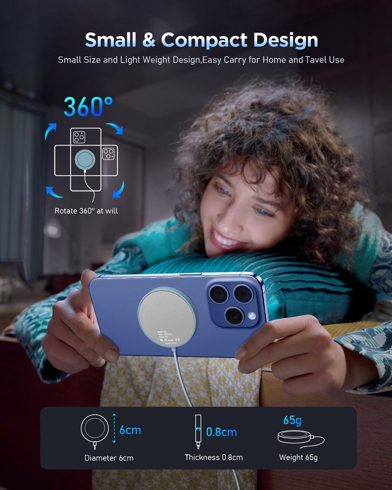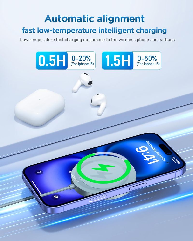 Cargador inalámbrico magnético - Almohadilla de carga magnética compatible con iPhone 14/14 pro/14