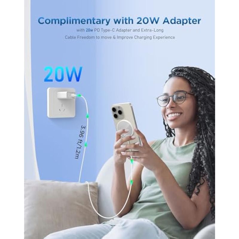Carga óptima con adaptador de 20 W: un bloque de cargador USB C PD de 20 W viene con este cargador inalámbrico magnético para satisfacer el mejor resultado de carga. El tiempo de carga del producto es de solo 2,5-3 horas. El cargador magnético para iPhone funciona como el original y se puede utilizar con una funda magnética transparente profesional para cargar otros dispositivos inalámbricos como iPhone 11promaxiphone X, etc. Si la funda de tu teléfono no está hecha con magnético, quítala para cargar.