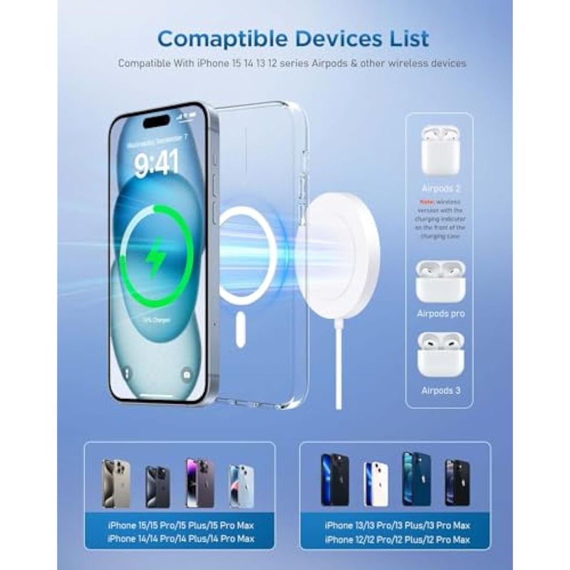 Específicamente para iPhone 141312: con nueva tecnología magnética hace que la carga inalámbrica sea muy fácil. Almohadilla de carga perfectamente inalámbrica compatible con Mag. Carga segura para iPhone 14, iPhone 14 Pro, iPhone 14 Plus, iPhone 14 Pro Max, iPhone 13, 13 Pro, 13 Pro Max, 13 mini; iPhone 12, iPhone 12 Pro, iPhone 12 mini iPhone 12 Pro Max. Carga inalámbrica segura de hasta 7.5 W. Y con modelos de AirPods Pro 3 y 2 con una funda de carga inalámbrica.