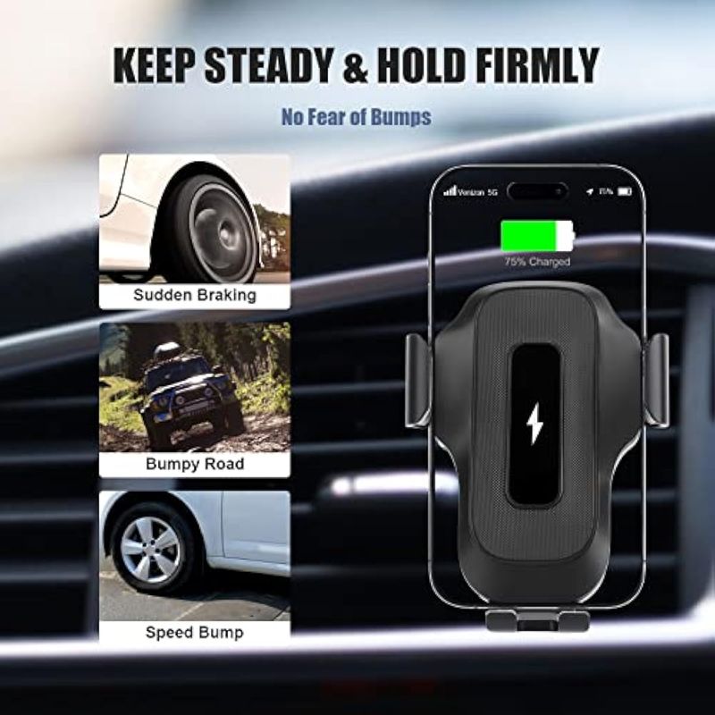 Cargador inalámbrico para automóvil, AMLINK 15 W Qi de carga rápida para automóvil, soporte de