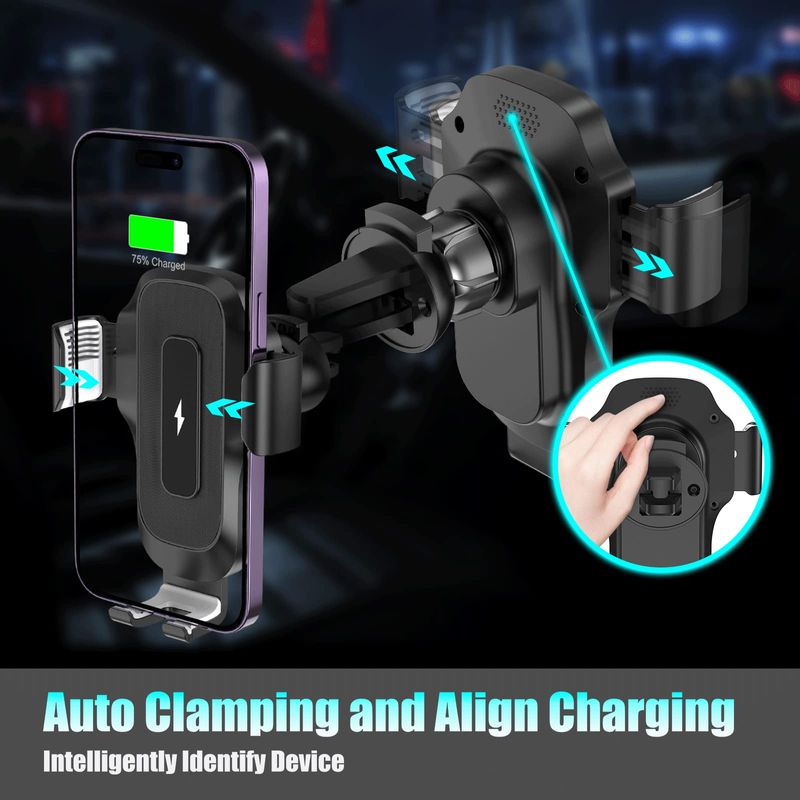 TELEFONIAACCESORIOSCARGADORESCargador inalámbrico para automóvil, AMLINK 15 W Qi de carga rápida para automóvil, soporte de