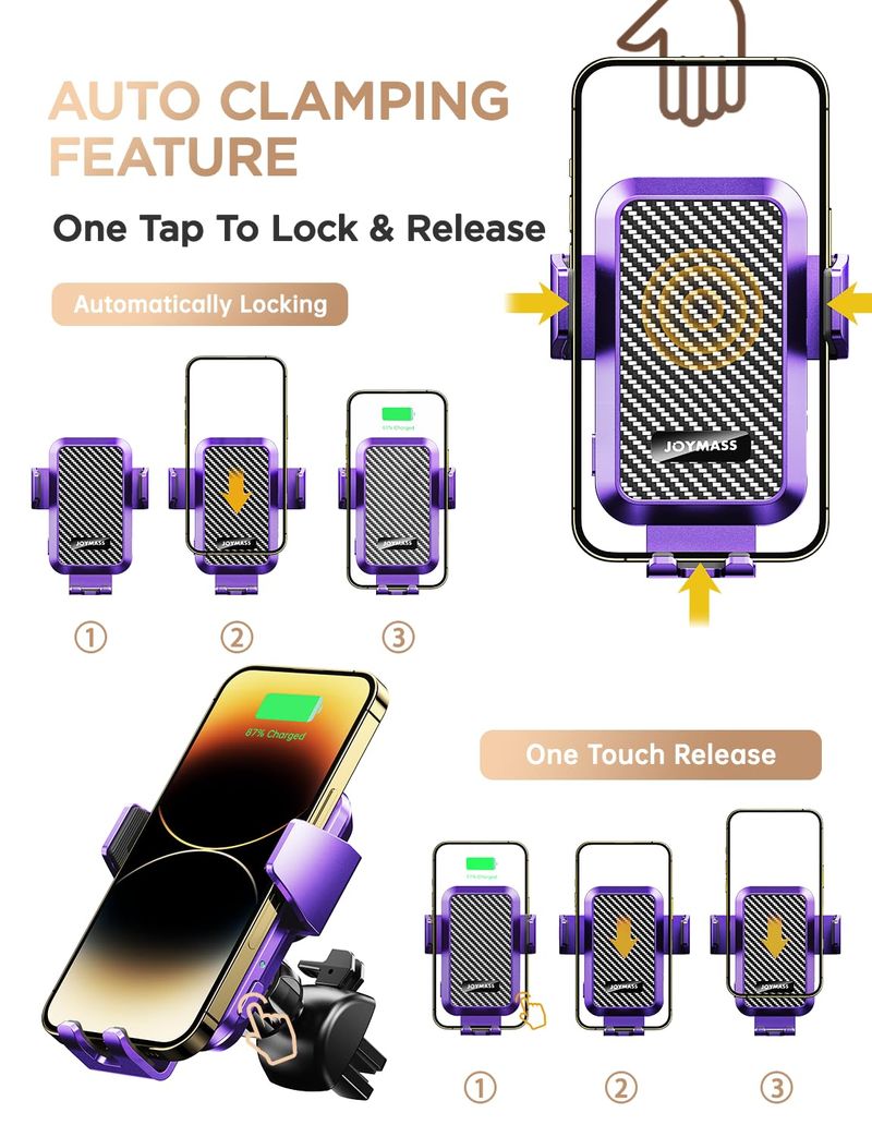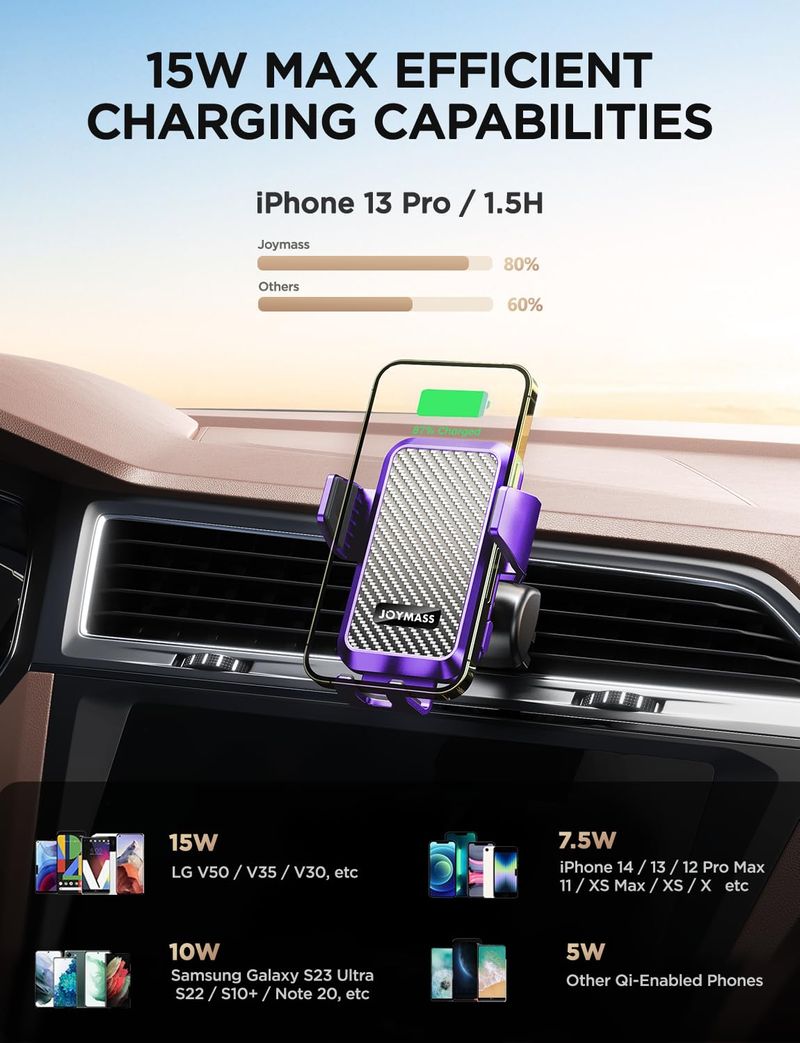 Cargador inalámbrico para automóvil, JOYMASS de 15 W, carga rápida, sujeción automática, cargador de