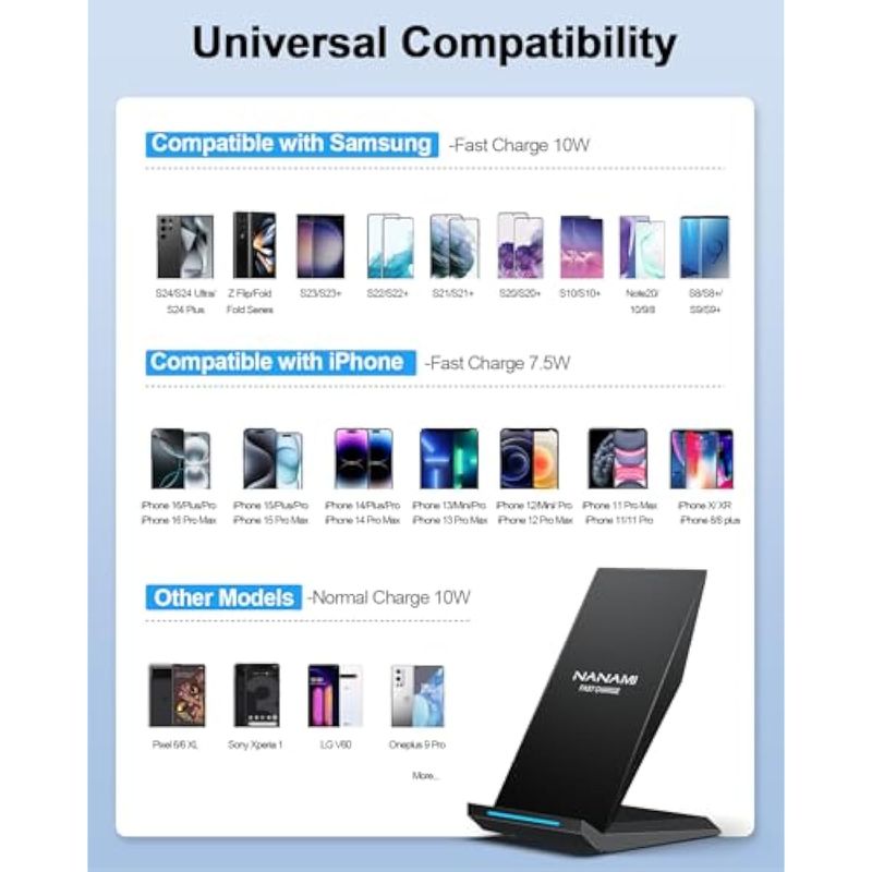 TELEFONIAACCESORIOSCARGADORESCargador inalámbrico rápido, [2 unidades] Soporte de carga inalámbrico certificado NANAMI Qi para