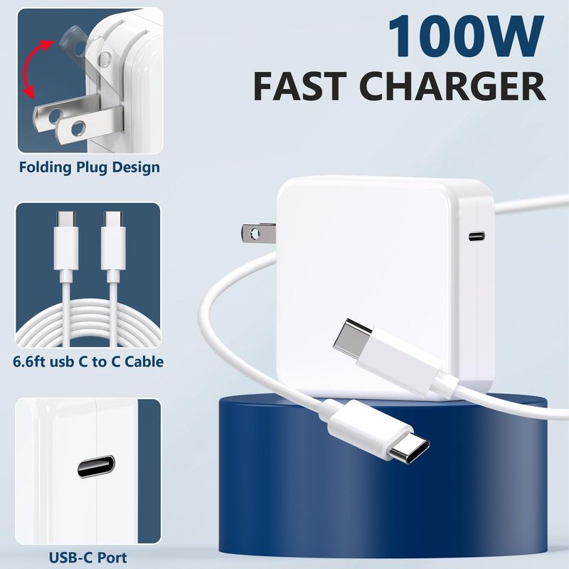 Cargador Mac Book Pro de 100 W, adaptador de corriente USB C para MacBook Pro 16, 15, 14, 13
