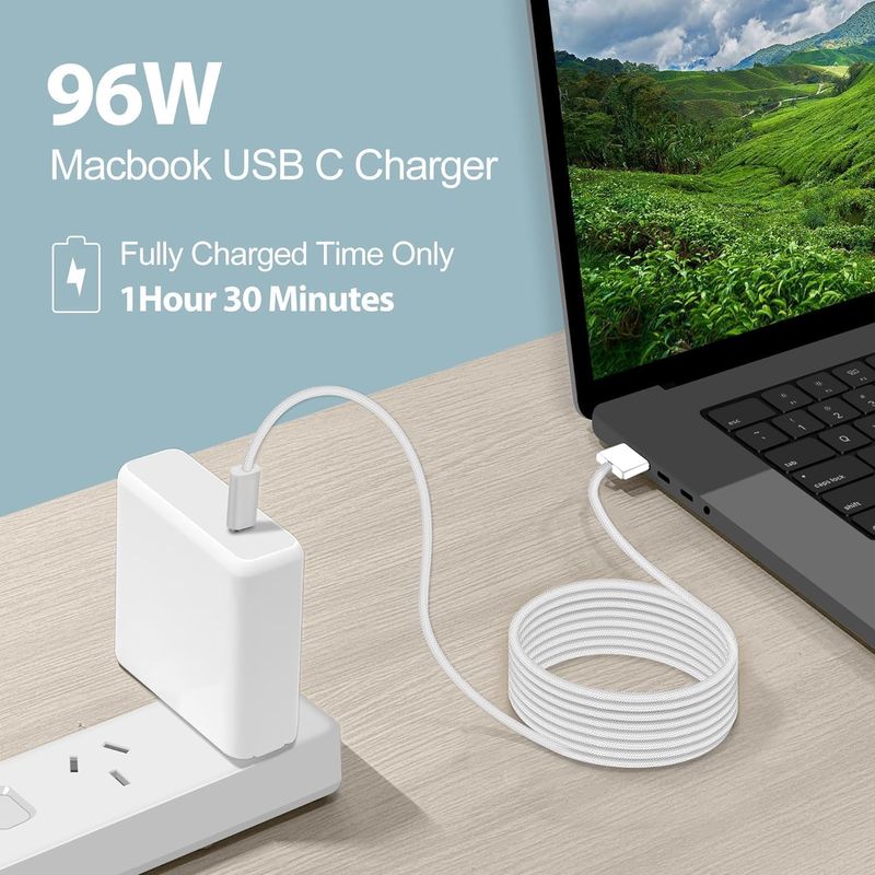 Carga súper rápida: carga completa para Mac Book Pro de 16 pulgadas en solo 1 hora y 47 minutos, carga rápida Mac Book Pro de 14 pulgadas a 50 en solo 30 minutos tan rápido como el cable MagSafe 3, mucho más rápido que 67 W durante 14 pulgadas; mayor rendimiento de carga que el cargador USB C de 87 W, 67 W, 61 W, 30 W mientras se carga para Mac Book Pro 161514144648 ES Mac Book Air de 1513 pulgadas