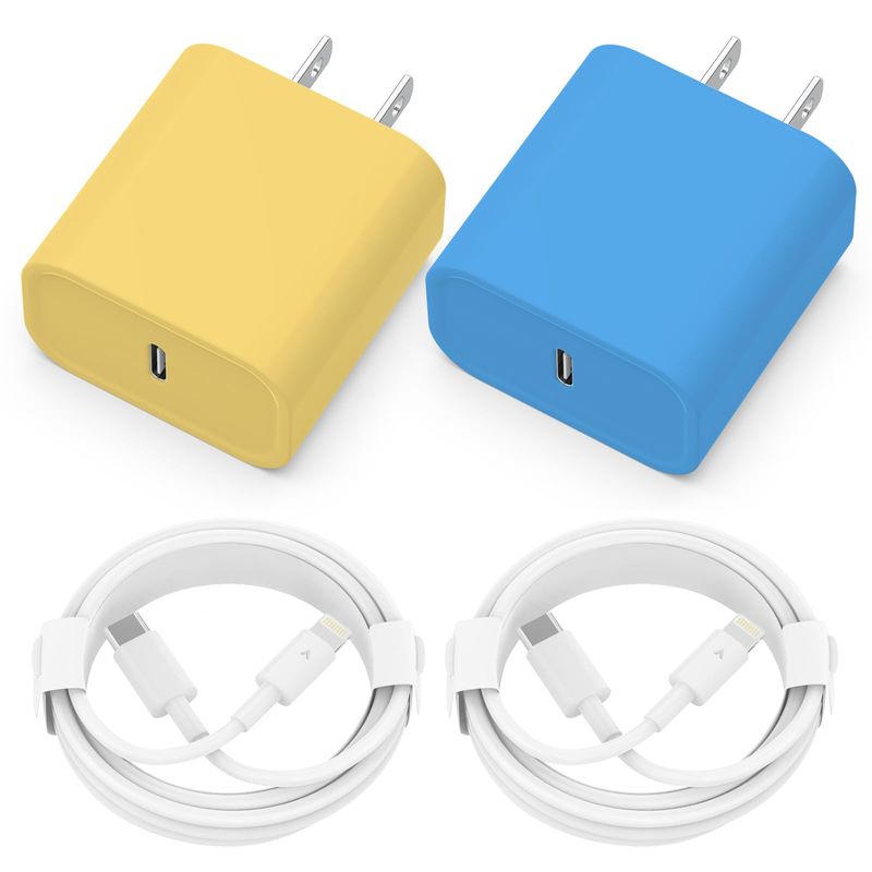 Cargador para iPhone [certificado MFi] Paquete de 2 adaptadores de carga rápida de pared PD de 20 W