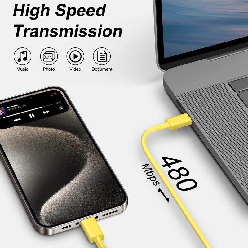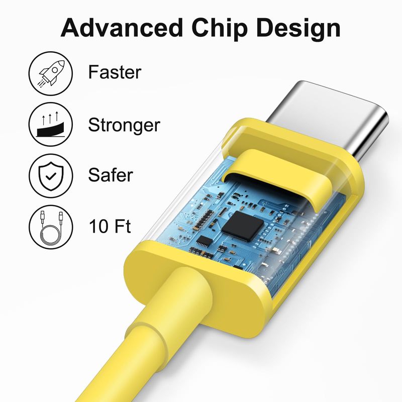 Cable USB C de 10 pies: con el cable USB-C a C de chip inteligente, diseño reversible amigable, velocidad de carga máxima de hasta 20 V3 A, también soporta transmisión de datos rápida de 480 Mbps. La longitud de 10 pies puede darte más espacio para moverte mientras cargas