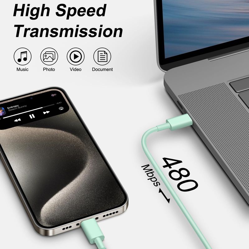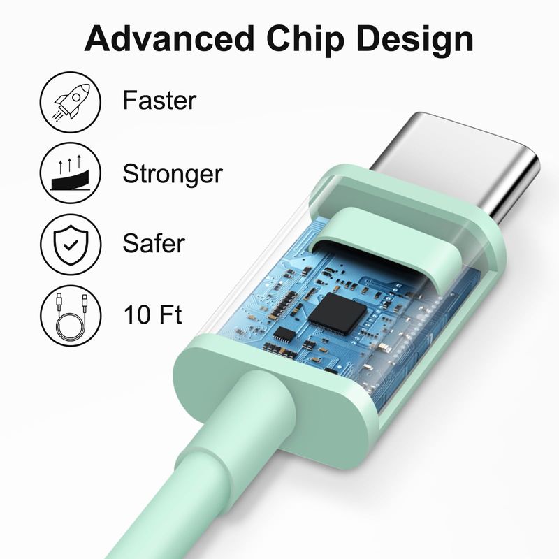 Cable USB C de 10 pies: con el cable USB-C a C de chip inteligente, diseño reversible amigable, velocidad de carga máxima de hasta 20 V3 A, también soporta transmisión de datos rápida de 480 Mbps. La longitud de 10 pies puede darte más espacio para moverte mientras cargas