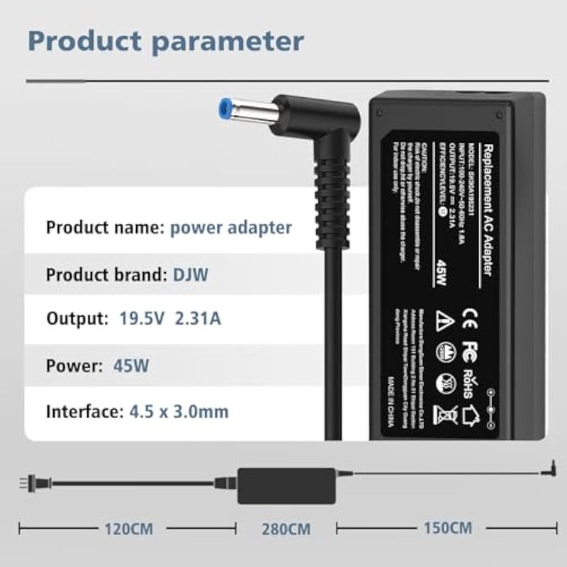 Cargador para ordenador portátil HP 45W Smart Blue Tip adaptador de corriente