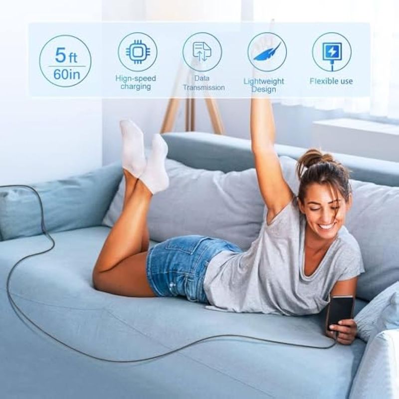 Resistente y duradero: los cables de carga USB son más resistentes y duraderos. Los cables de cobre altamente puros y más gruesos garantizan una corriente máxima de 3 amperios y velocidades de transferencia de 480 Mbps para tus dispositivos en una funda 100 segura. Longitud de 5 pies, fácil de cargar en diferentes ocasiones, para viajes, hogar, automóvil, oficina, etc.