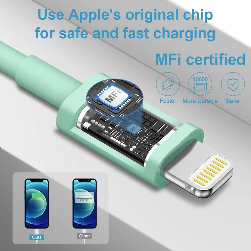 Cable rápido certificado por Apple MFi: con el chip MFi de Apple, los cables Firewire USB-C a cable rápido equipan la función de reconocimiento automático de chips. La certificación Apple MFi garantiza una compatibilidad 100 impecable con los dispositivos Apple. No más mensajes de advertencia de activación.