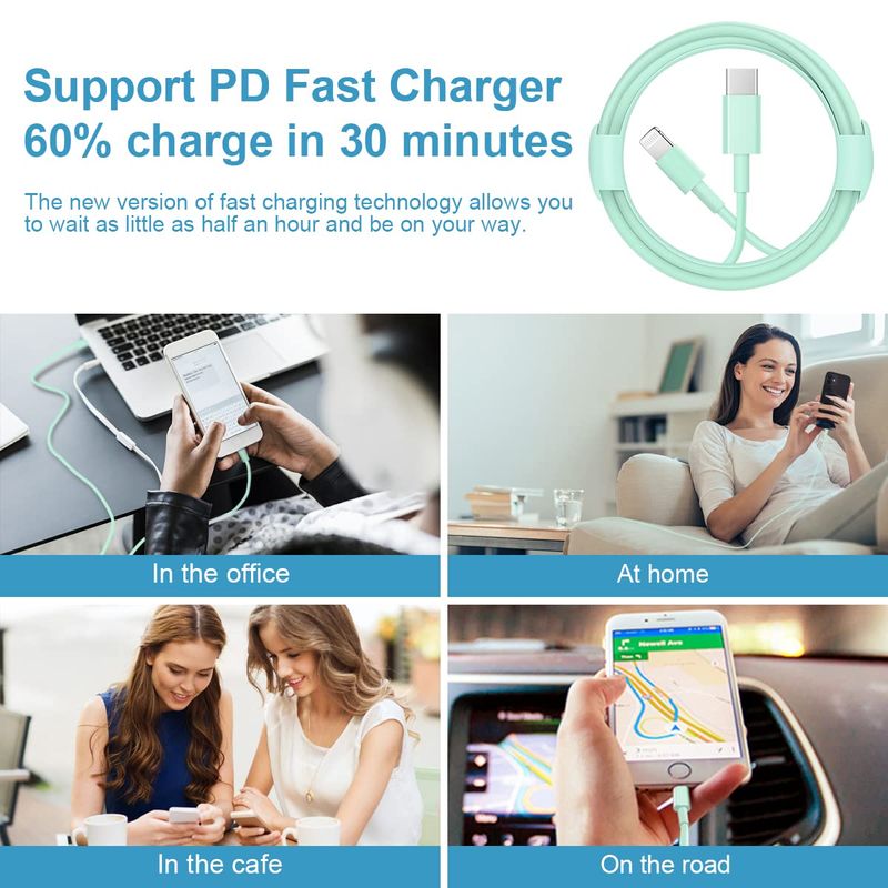 Cargador rápido Romitaz PD 3.0 para iPhone: cargador rápido para iPhone equipado con enchufe de pared de suministro de energía USB tipo C de 20 W, cable Firewire PD 3.0 de carga rápida USB C proporciona una potencia de salida máxima de 20 W, carga tu dispositivo hasta 3 veces más rápido que el cargador original de 5 W, carga tu iPhone 12 hasta un 50 en solo 30 minutos, ahorrando más de 1.5 horas. rs para ti.