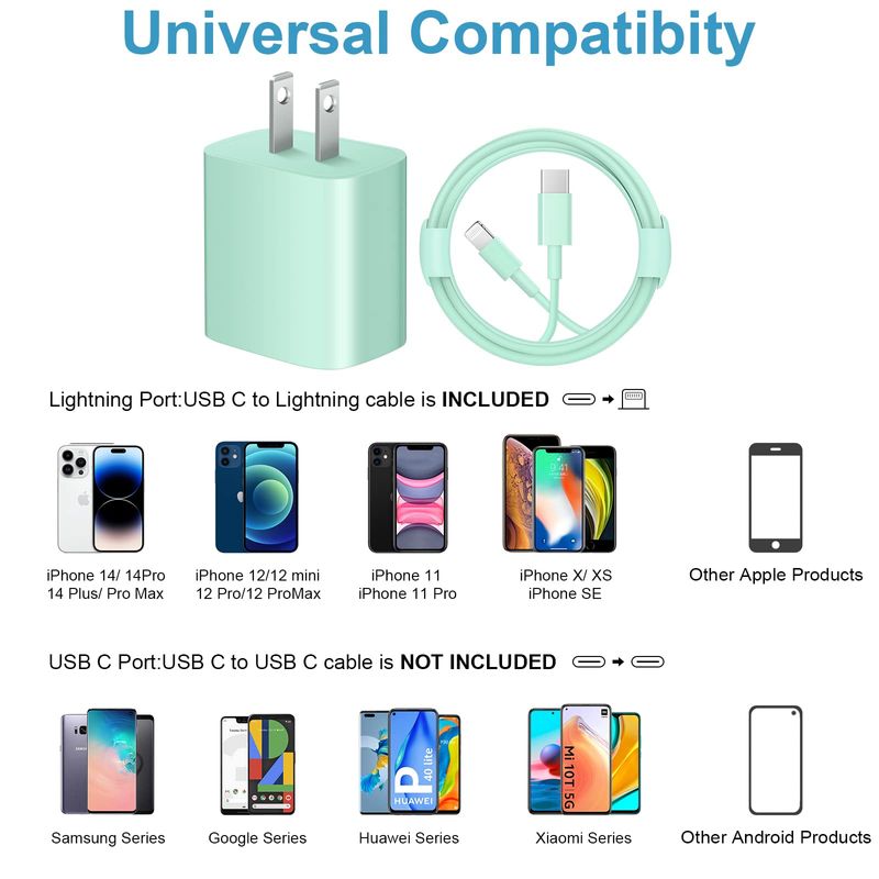 Equipo Apple aplicable: utiliza los cables Firewire oficiales para iPhone con cargador de pared USB C Romitaz de 20 W para acceder a la carga rápida para iPhone 14iPhone 14 MaxiPhone 14 ProiPhone1313 Pro13 Pro Max13 mini, iPhone 1212 Mini12 Pro12 Pro MaxSE 2020 111 1 Pro 11 Pro Max XSXS Max XR X, 8 8 Plus, iPad, iPad Pro, iPad mini, iPad Air. Este cargador rápido Romitaz Power Delivery 3.0 también carga para iPhone 7 6 Plus, iPhone 5 5c 5s SE Airpod en una velocidad de carga original.