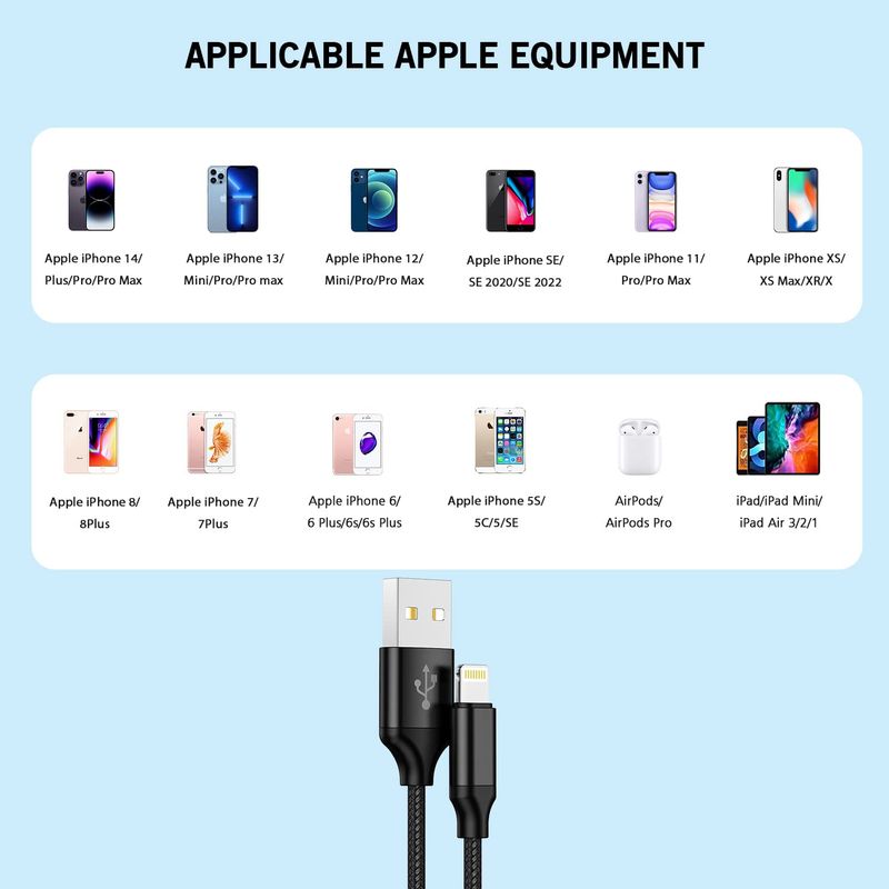 Lo que obtienes: 2 cables Lightning trenzados de nailon con certificación MFi de longitud de 6 pies y 2 cargadores de iPhone de 10.5 W con bloque. No dudes en ponerte en contacto con nosotros, nuestro equipo de servicio te proporcionará una solución satisfactoria en 24 horas.
