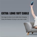 Cable de carga para iPhone de 6 pies de largo con cargador de pared USB de doble puerto satisface las necesidades de flexibilidad y alta eficiencia.