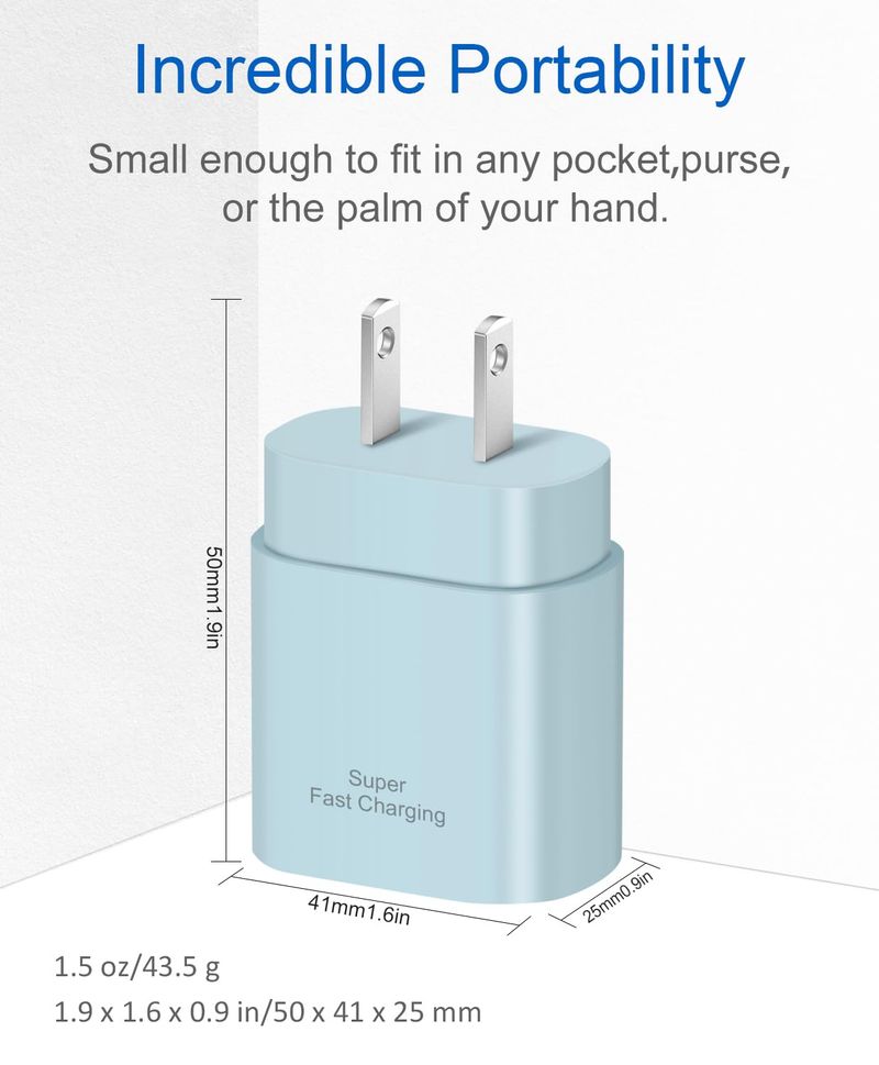 Paquete de 2 cargadores USB C de 25 W: equipado con un puerto USB tipo C, el cargador PD 3.0 te proporciona una potencia de salida máxima de 25 W, carga Samsung Galaxy Note 1010 Plus hasta un 50 en solo 30 minutos, carga completa en solo 1 hora, ahorra más de una hora.