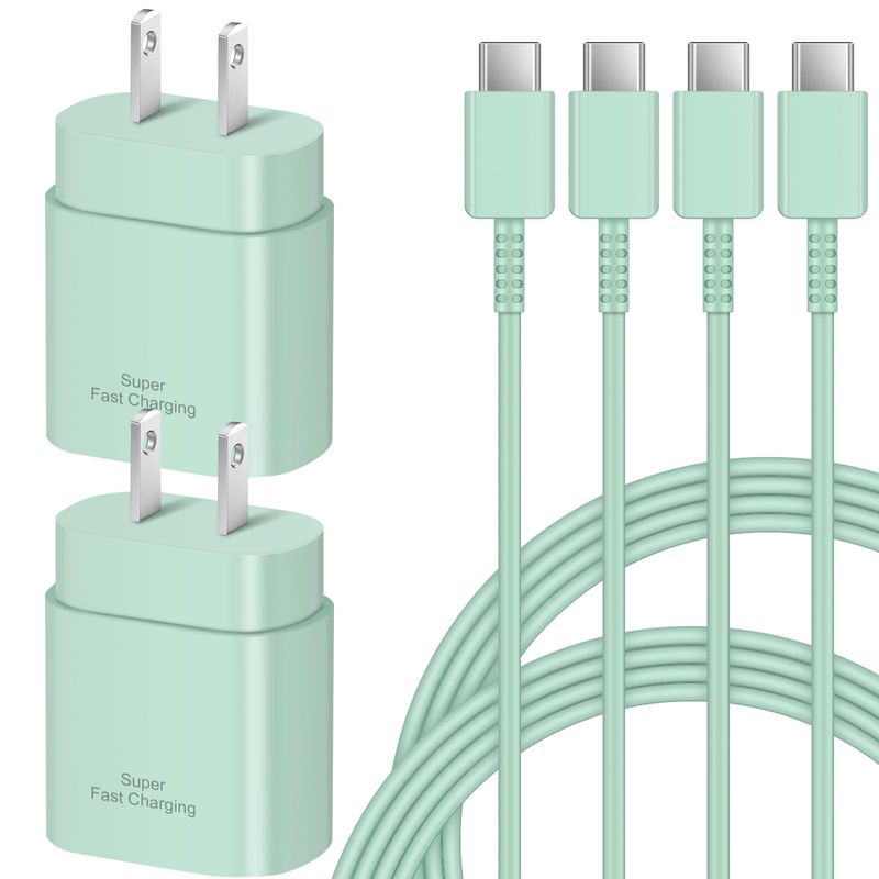 Cargador rápido USB C para Samsung 25W tipo C, paquete de 2 bloques de cargador rápido de pared con