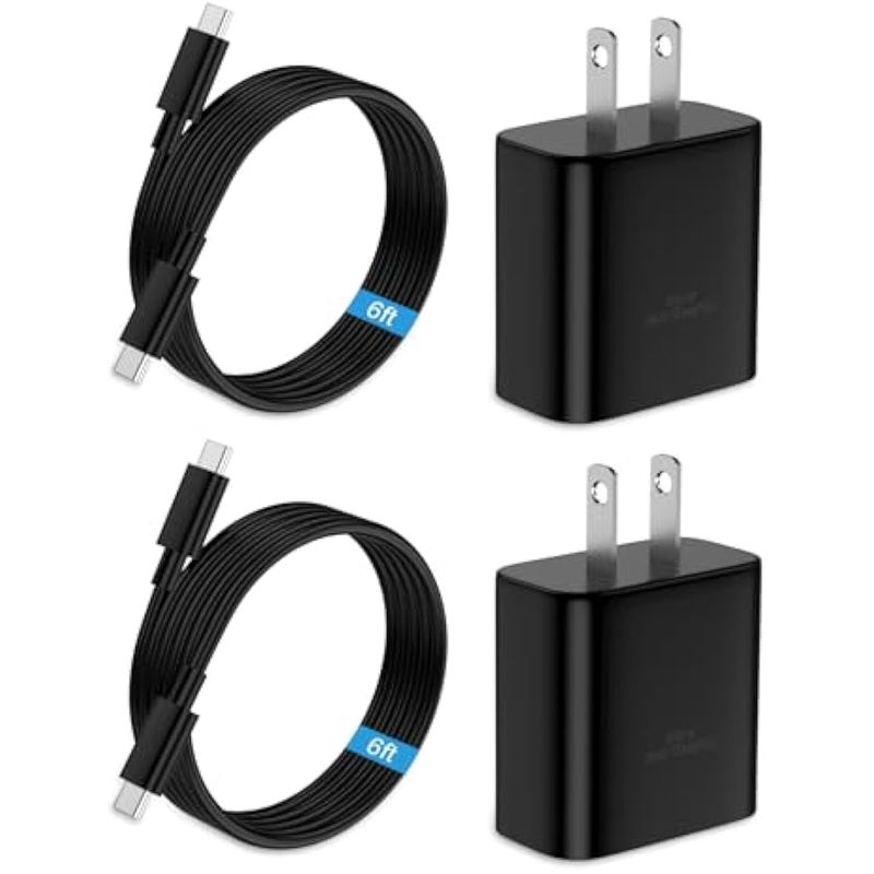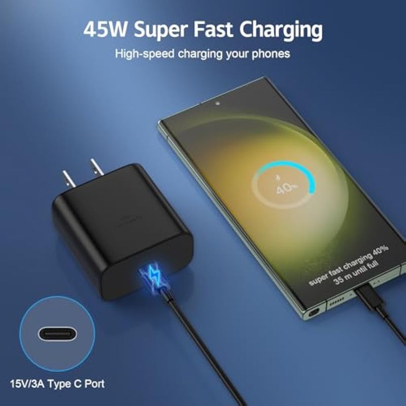 Lo que obtienes: 2 bloques de cargador de pared USB C de 45 W, 2 cables de carga rápida Samsung de 6 pies. Nuestra garantía de 12 meses sin preocupaciones y servicio al cliente amigable las 24 horas.