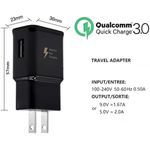 Carga rápida adaptativa: carga rápida adaptable durante 30 minutos, hasta un 50 de nivel de batería, un 75 más rápido que los cargadores estándar. Entrada: 100-240V 0.5A; Salida: 9V1.67A o 5V2A