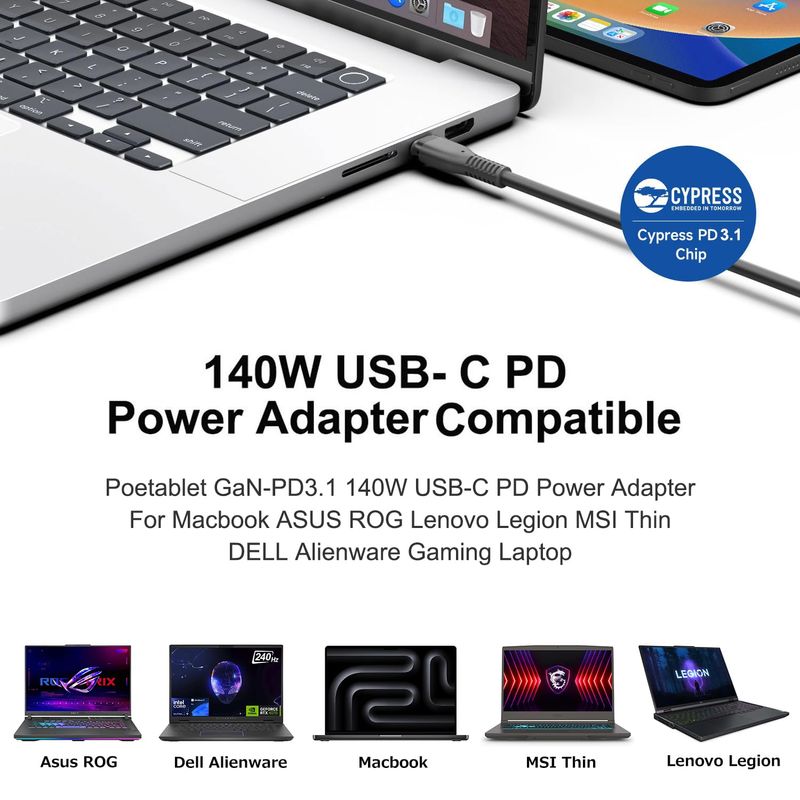Cargador rápido de 140 W: compacto y portátil: la fuente de alimentación tiene un tamaño de 5.020 x 2.028 x 1.260 in y un peso de 12.35 oz. Ideal para viajes, hogar u oficina. Salida inteligente: DC 5V 3A 9V 3A 12V 3A 15V 3A 20V 5A 28V 5A MAX 140W. Entrada: AC: 100-240V 50-60Hz para uso mundial; el adaptador de corriente USB-C de 140 W proporciona una alta eficiencia de carga de hasta el 99, y tiene una corriente de salida estable, lo que permite usted para cumplir con la carga necesita más rápido en cualquier escena y en cualquier lugar, no importa si es portátil o tableta o teléfono móvil, un dispositivo resuelve todos los problemas de carga