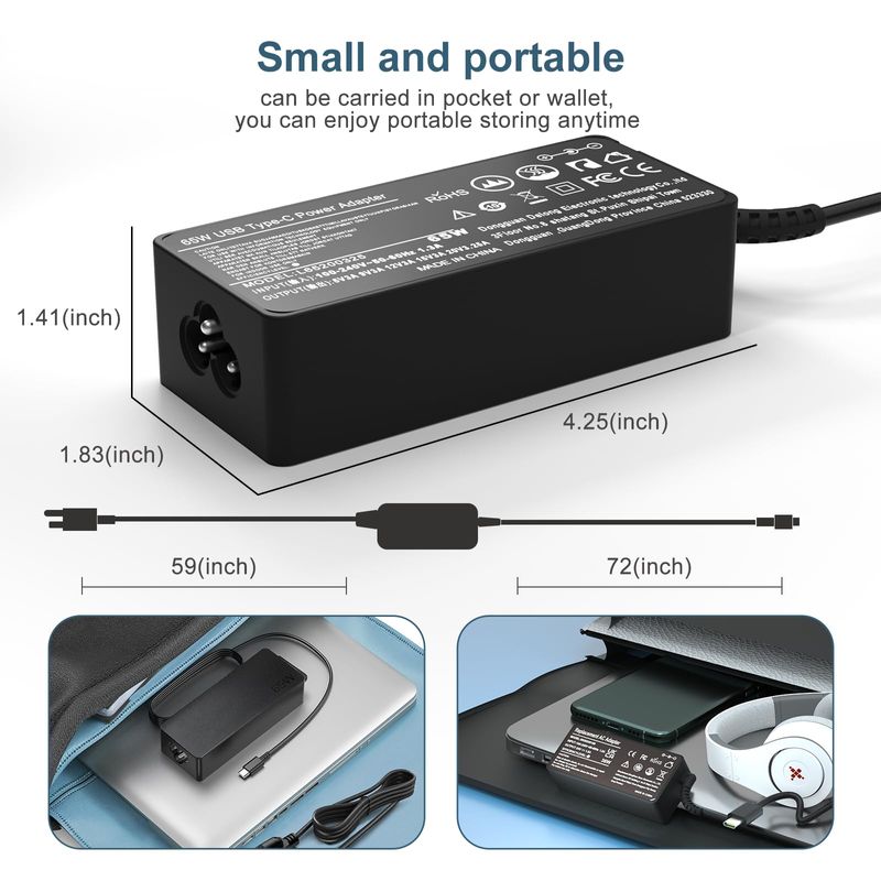 INFORMÁTICANOTEBOOKSCargador USB C de 65 W Adaptador de CA para portátil LG Gram 14 15 16 16 17 Series Pro 15Z90Q 16T90Q