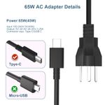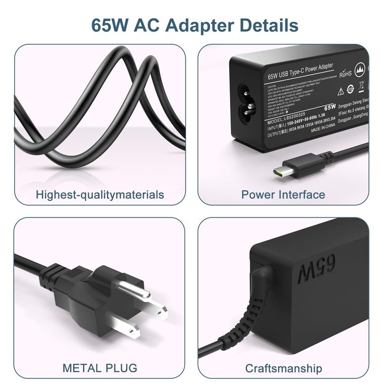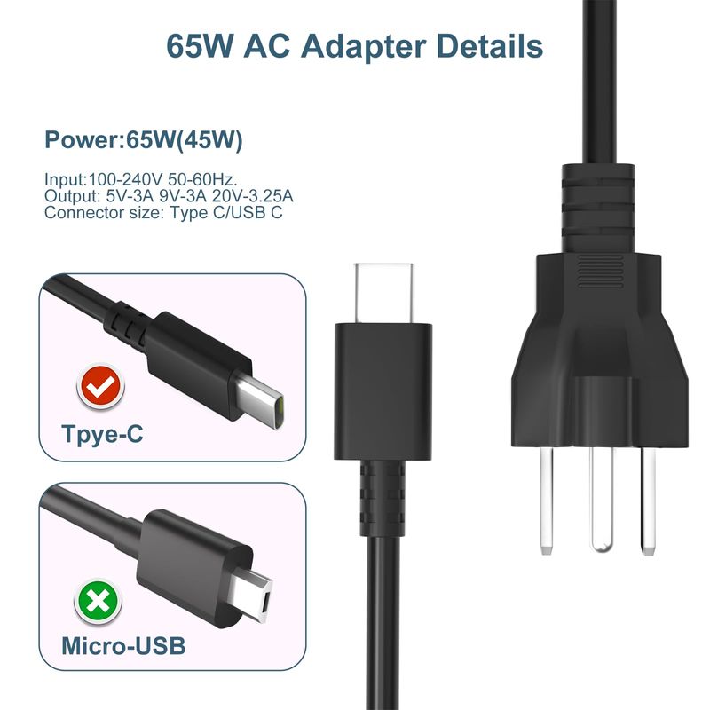 Cargador USB C de 65 W Adaptador de CA para portátil LG Gram 14 15 16 16 17 Series Pro 15Z90Q 16T90Q