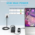 INFORMÁTICANOTEBOOKSCargador USB C de 65 W y 45 W para laptop HP EliteBook Spectre, Lenovo Thinkpad Yoga, Dell