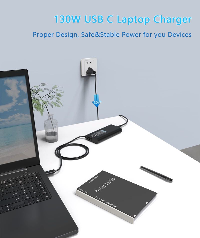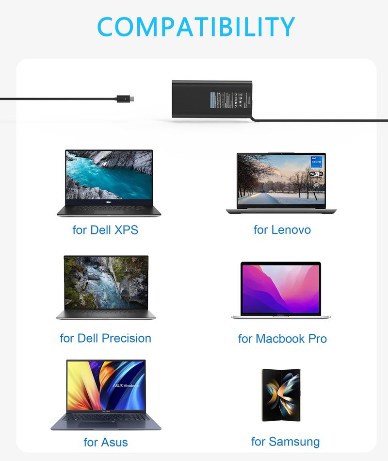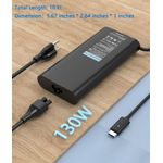 Cargador USB C para portátil de 130 W compatible con Dell XPS 16 9640, XPS 13 9340, XPS 14 9440, XPS