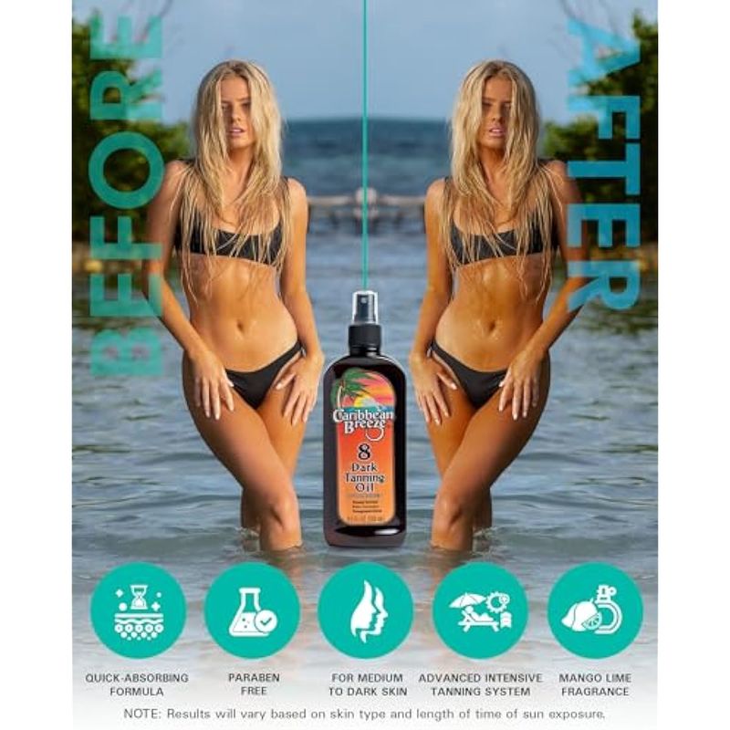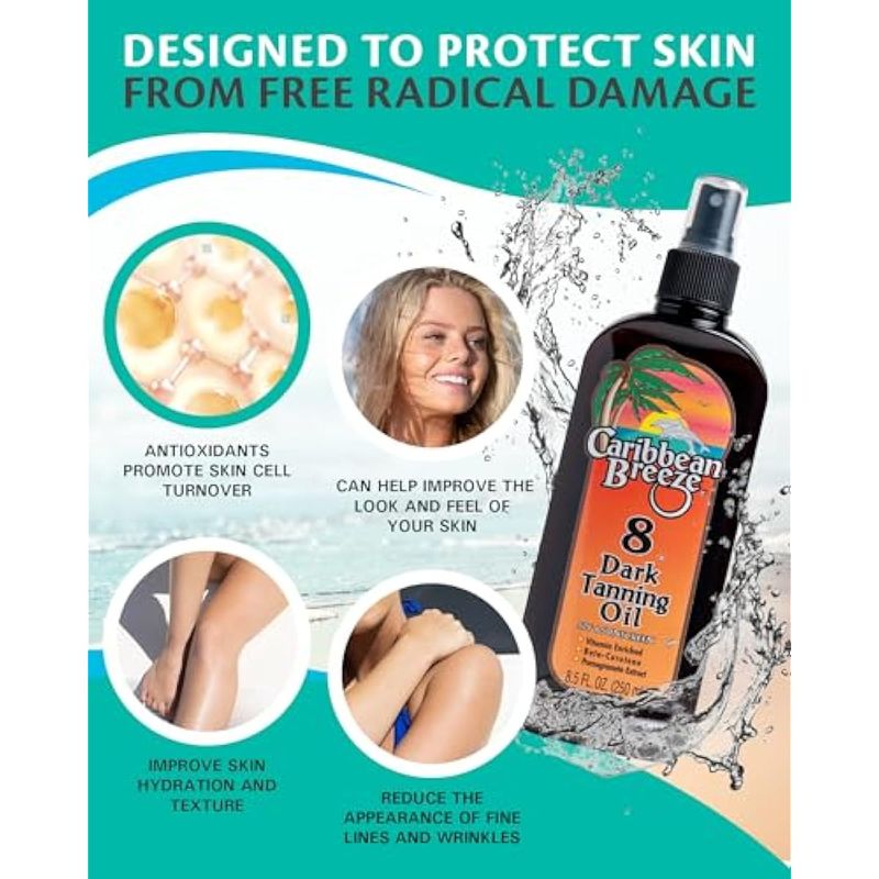 BELLEZA Y SALUDBELLEZA Y CUIDADO CORPORALCUIDADO DE LA PIELCaribbean Breeze SPF 8 - Intensificador de aceite de bronceado oscuro, acelerador de bronceado para