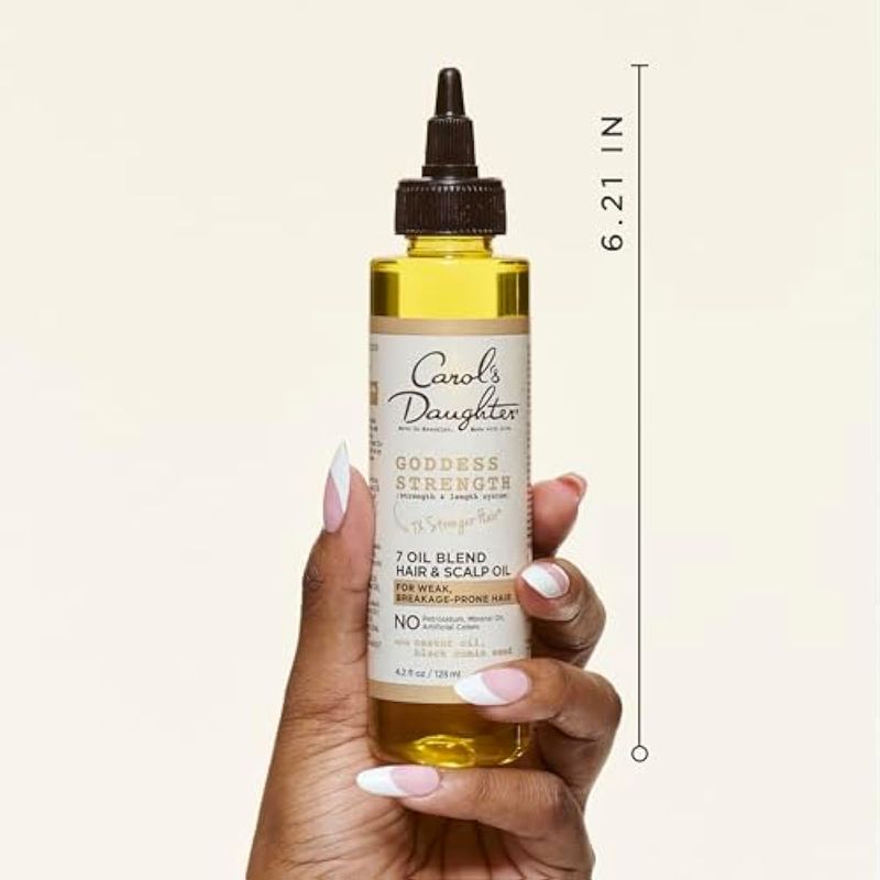 CAROL'S DAUGHTER GODDESS STRENGTH - MEZCLA DE 7 ACEITES PARA CUERO CABELLUDO Y CABELLO CON ACEITE DE RICINO Y ACEITE DE SEMILLAS NEGRAS, PARA CABELLO DéBIL, PROPENSA A LA ROTURA, 4.2 ONZAS LíQUIDAS