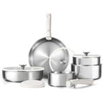 HOGARBAZARBATERIA DE COCINACAROTE Juego de 12 ollas y sartenes, juego de utensilios de cocina de acero inoxidable, mango