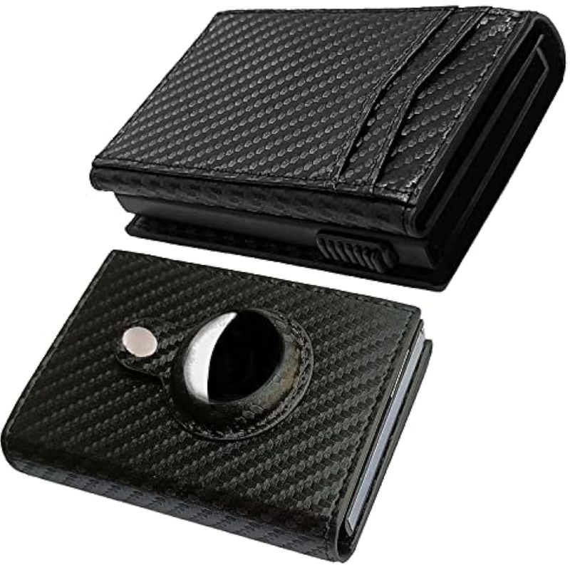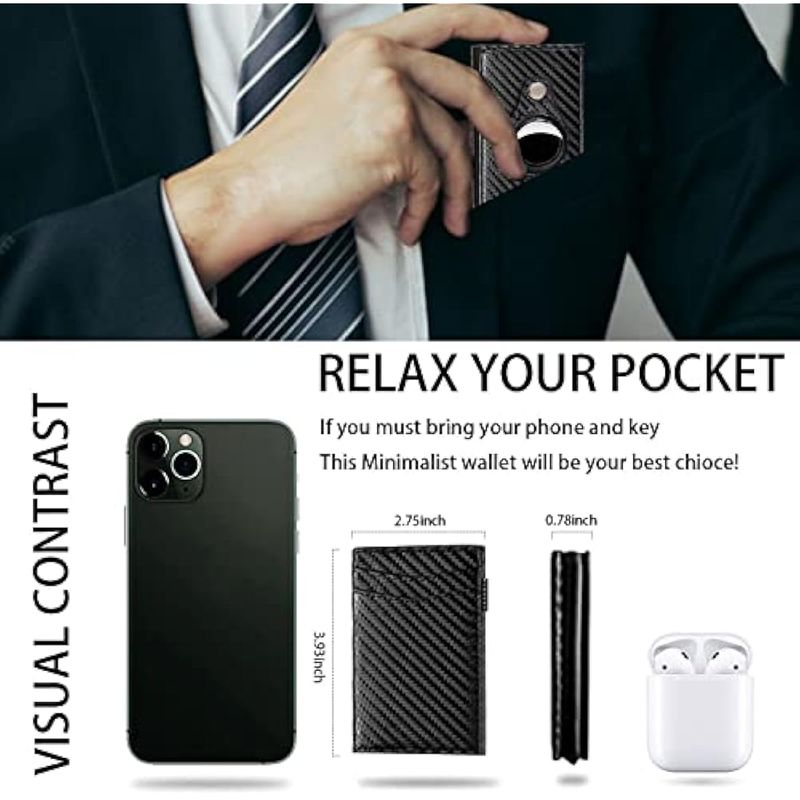 CARTERA INTELIGENTE DESPLEGABLE CON BOLSILLO FRONTAL CON BLOQUEO RFID, TARJETERO CON CLIP PARA DINERO, CARTERA DELGADA Y MINIMALISTA RASTREABLE PARA HOMBRES, FIBRA DE CARBONO NEGRO, MINIMALISTA