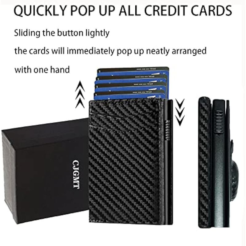 ???TARJETAS DE ACCESO RÁPIDO? - Cartera de tarjetas para hombre con solo un dedo desliza el botón, todas las tarjetas se deslizan ordenadamente, hace que sea muy fácil encontrar qué tarjeta estás buscando.