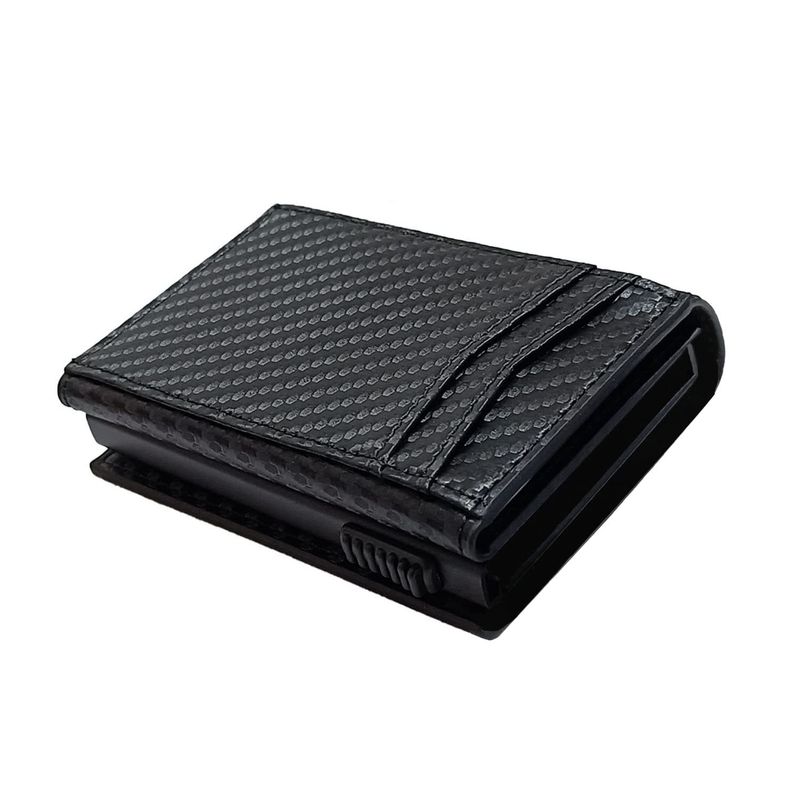 CARTERA INTELIGENTE DESPLEGABLE CON BOLSILLO FRONTAL CON BLOQUEO RFID, TARJETERO CON CLIP PARA DINERO, CARTERA DELGADA Y MINIMALISTA RASTREABLE PARA HOMBRES, FIBRA DE CARBONO NEGRO, MINIMALISTA