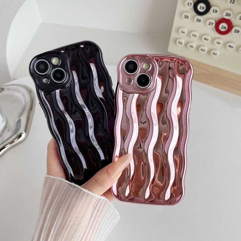 Caseative Marco de ondas rizadas con patrón de ondas de agua, suave, compatible con iPhone (blanco, - Pardo