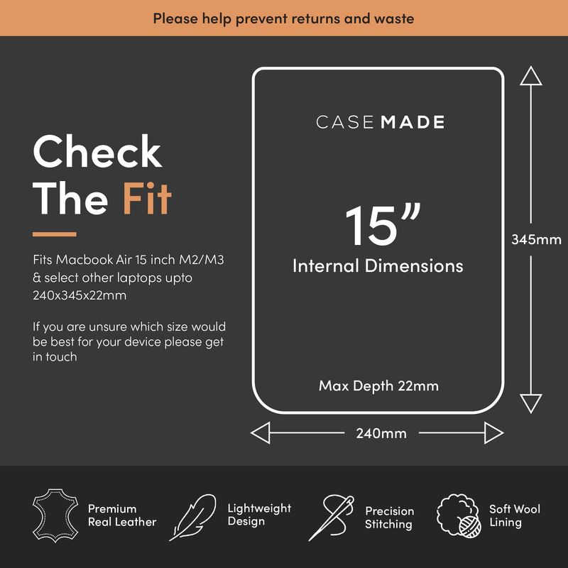 Casemade Funda de piel auténtica para laptop MacBook Pro y Air de 13, 14, 15 y 16 pulgadas, piel