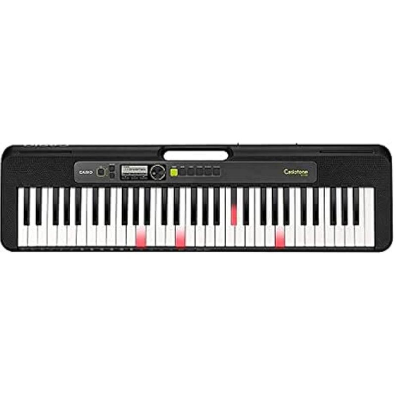 61 teclas iluminadas estilo piano con respuesta táctil Conectividad USB Asa de transporte incorporada 400 tonos, 77 ritmos, 60 canciones Accesorios incluidos: Fuente de alimentación y reposo de música