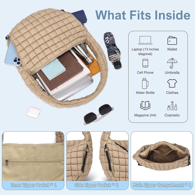 HOGARINDUMENTARIA Y ACCESORIOSCATMICOO Bolso de mano acolchado para mujer: Bolso de hombro tipo puff para viajes - Bolsa acolchada