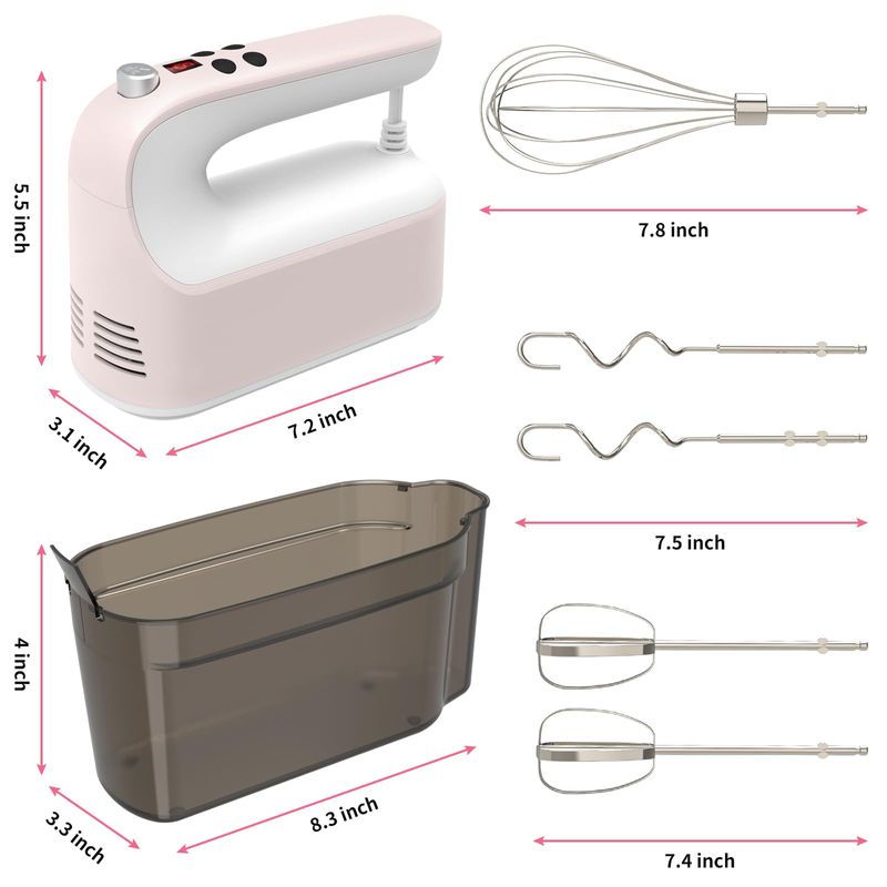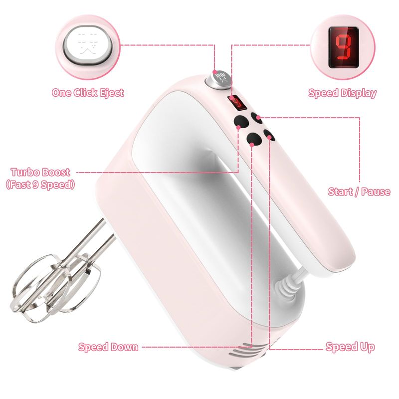 CBQ Batidora de mano eléctrica, mezclador de mano de 9 velocidades de 400 W con pantalla digital,
