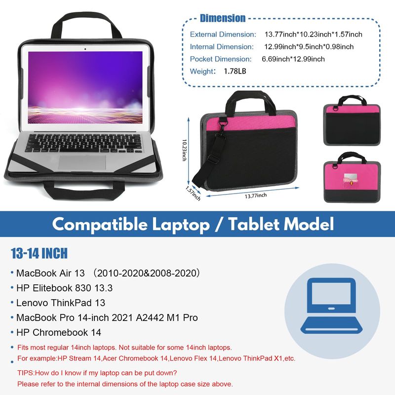 CDBXPRG Funda para laptop de 13 a 14 pulgadas, a prueba de golpes, funda protectora para computadora