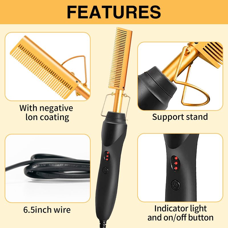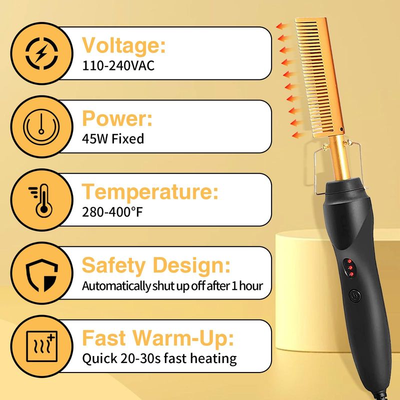 BELLEZA Y SALUDCUIDADO PERSONALPLANCHITASCepillo alisador de cabello con ajustes ajustables, calentamiento rápido para pelucas y cabello