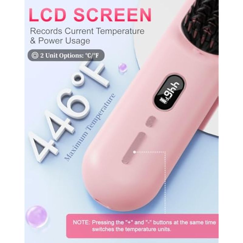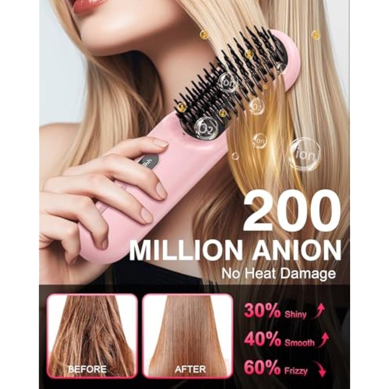 Cepillo alisador de cabello inalámbrico, 200 millones de aniones para cabello fino, cepillo alisador