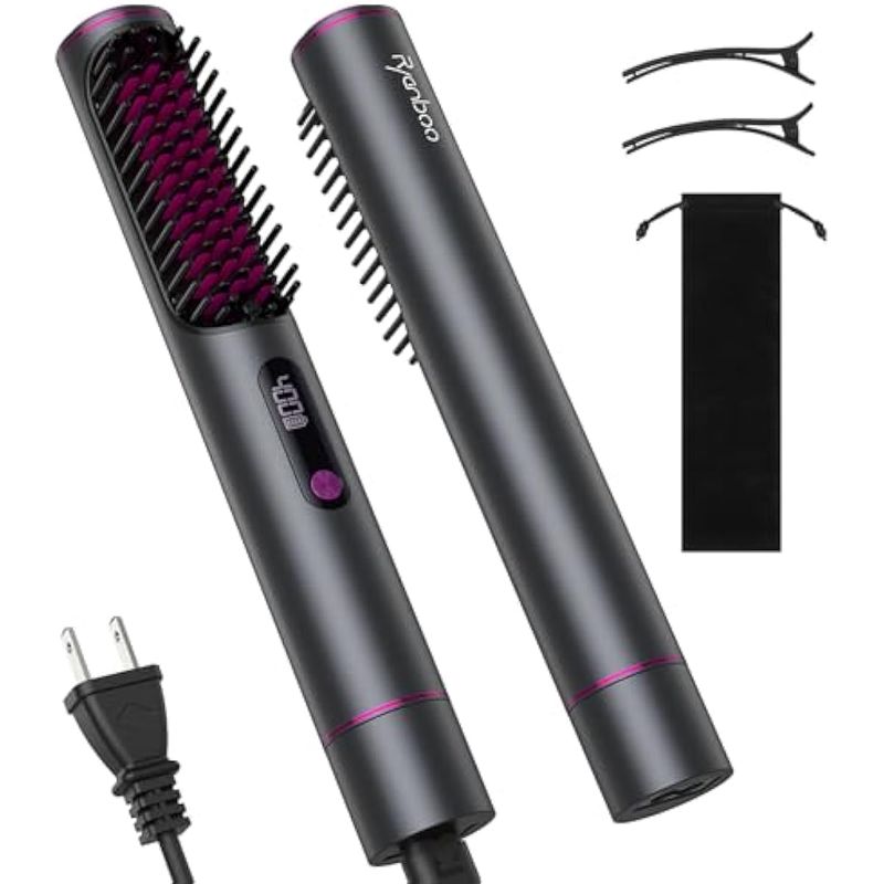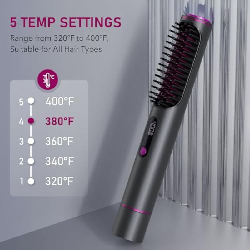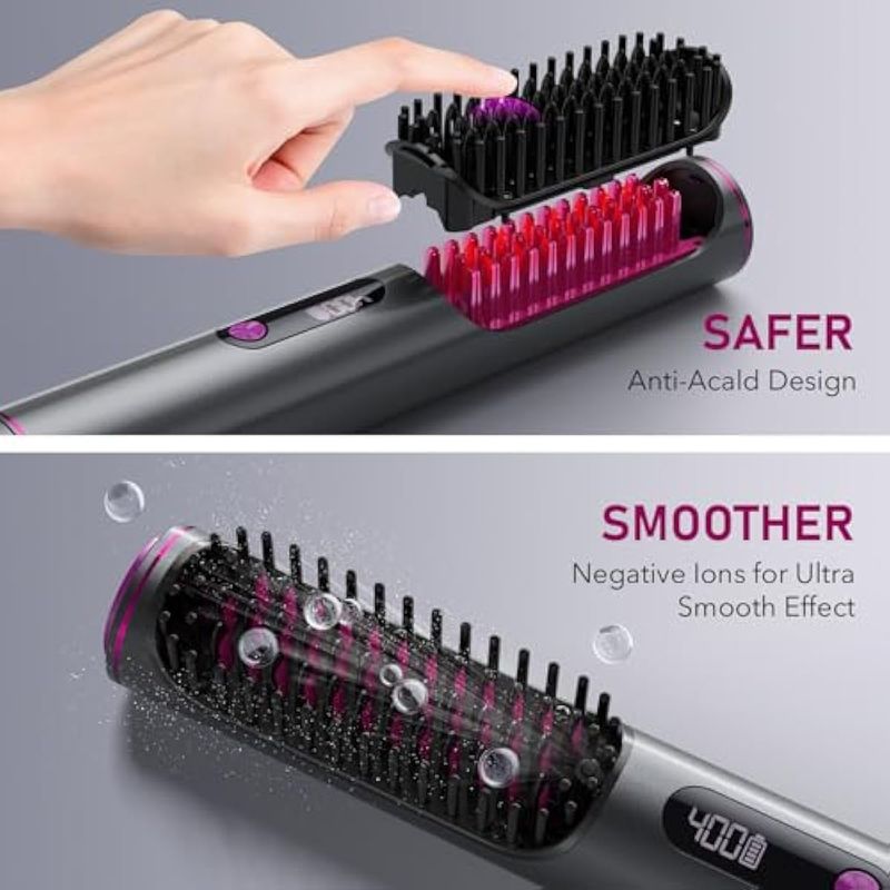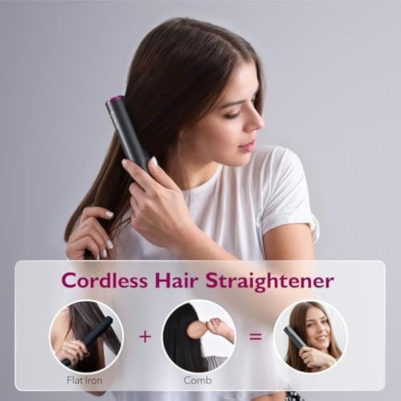 Cepillo alisador de cabello inalámbrico, peine alisador iónico portátil mejorado para viajes,