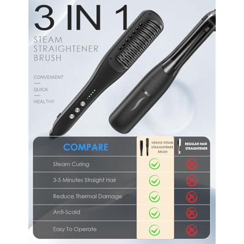 Cepillo alisador de cabello, peine alisador venxis con vapor, 3 ajustes de temperatura y