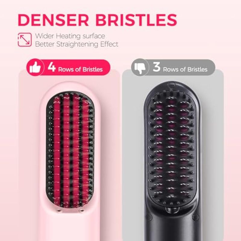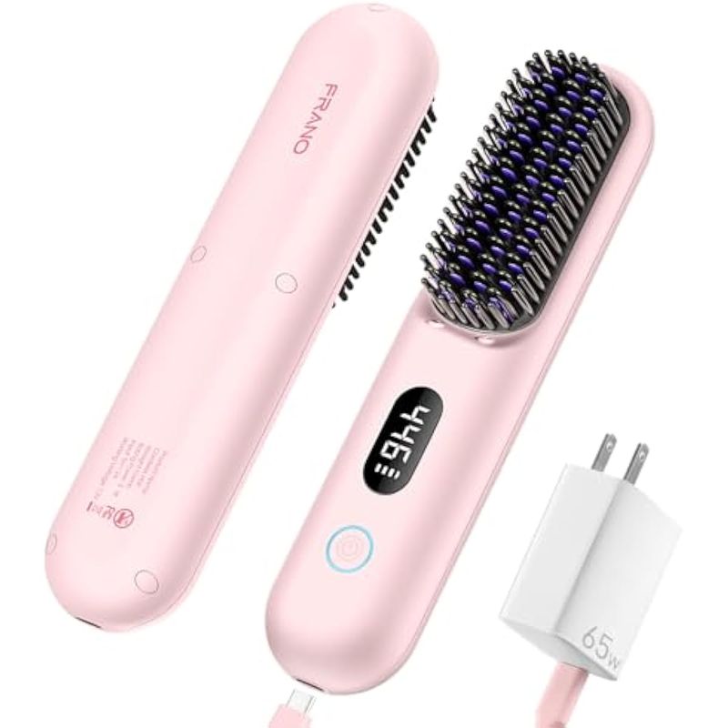 Cepillo alisador de pelo inalámbrico, cepillo alisador portátil para viajes, mini alisador iónico