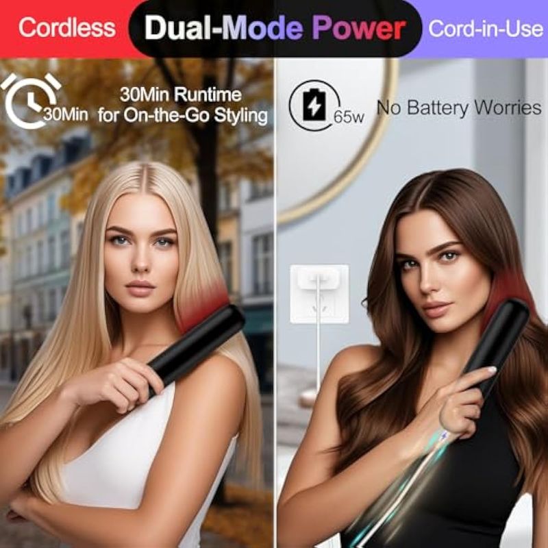 Cepillo alisador de pelo inalámbrico con carga rápida de 6500 mAh modo dual (cable en uso e