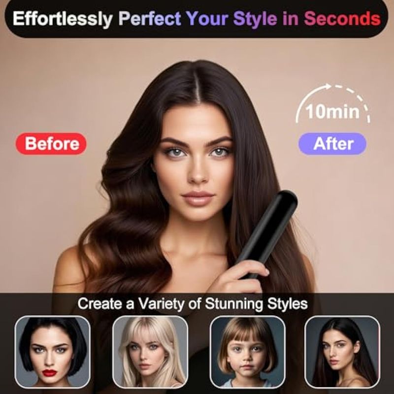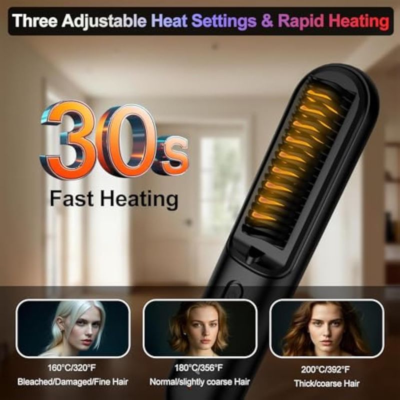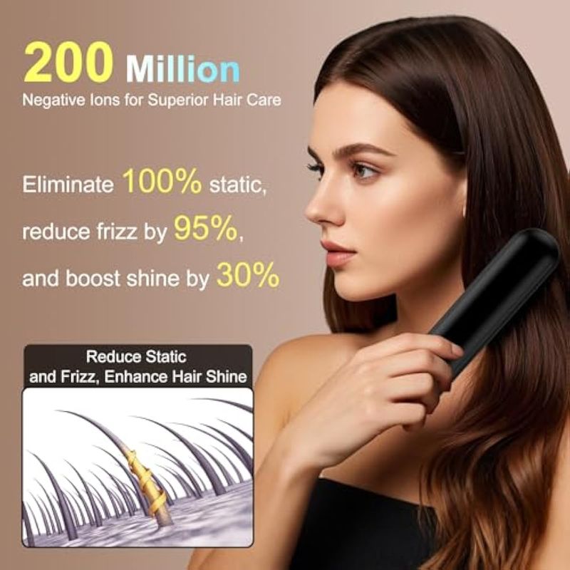BELLEZA Y SALUDCUIDADO PERSONALPLANCHITASCepillo alisador de pelo inalámbrico con carga rápida de 6500 mAh modo dual (cable en uso e