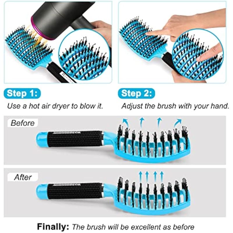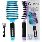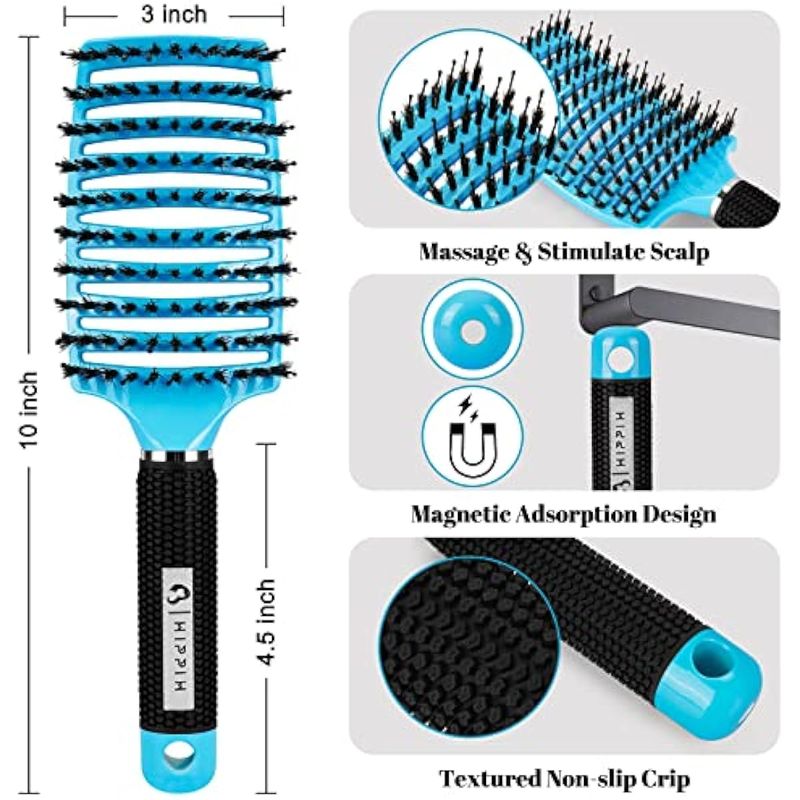 Cepillo de pelo de cerdas de jabalí, paquete de 2 cepillos HIPPIH Wet & Dry sin tirones, cepillo