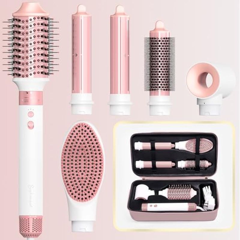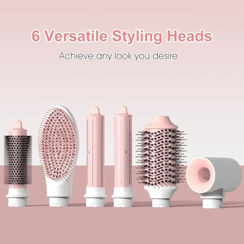 SOLUCIÓN DE ESTILO DE AIRE TODO EN UNO: Experimente un estilo versátil con nuestro juego de estilo de aire multifuncional 6 en 1. Esta completa herramienta incluye un secador de pelo, rizadores giratorios a la izquierda y a la derecha, un voluminizador suave, un cepillo desenredante y un cepillo redondo voluminizador, que aborda sin esfuerzo todas tus necesidades de peinado y te permite crear una variedad de looks hermosos.