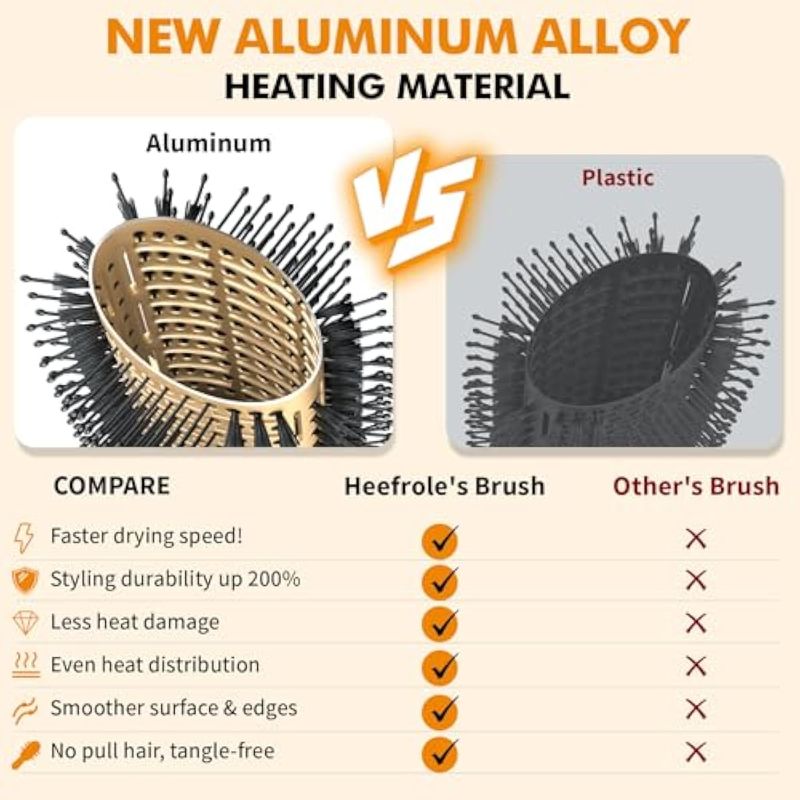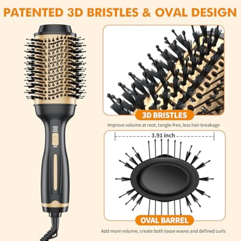 Diseño mejorado, añade volumen en la raíz: las cerdas 3D de esta herramienta de peinado mejoran el volumen en la raíz, sin enredos, con menos rotura del cabello, asegurando un aspecto más completo y voluminoso; peinado de material compuesto de nailon activo, resistencia a altas temperaturas, sin deformación, fuerte dureza y durabilidad; el diseño de barril ovalado añade más volumen de cabello, lo que te permite crear ondas sueltas y cabello liso sedoso con facilidad